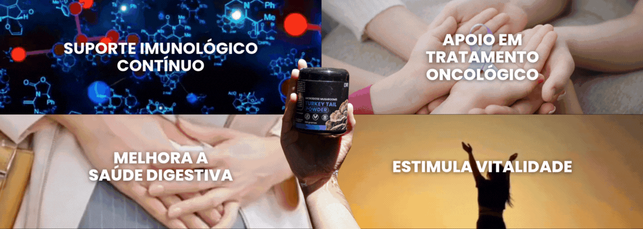 O Turkey Tail pode ser integrado ao protocolo como apoio complementar, sempre com orientação profissional.